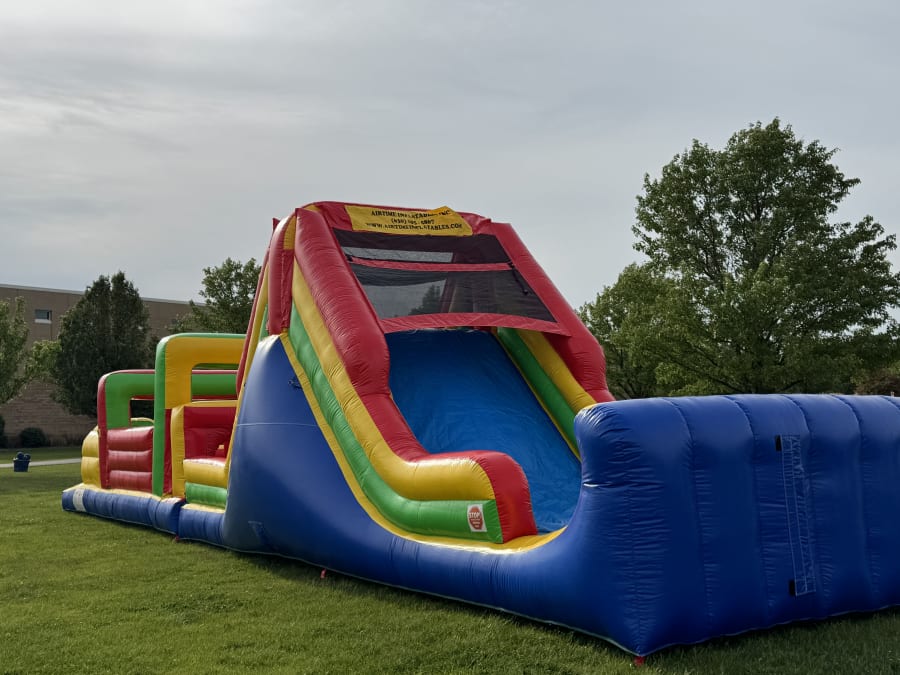Get ready to race your friends through this 52 FT obstacle course with slide! This is a perfect option for your schools field day, church event, back yard party or any occasion! Our inflatables are cleaned between each use. Allow 45-60 minutes for set up. You can check availability and book this by clicking below, call us at 6302055867 or Contact Us