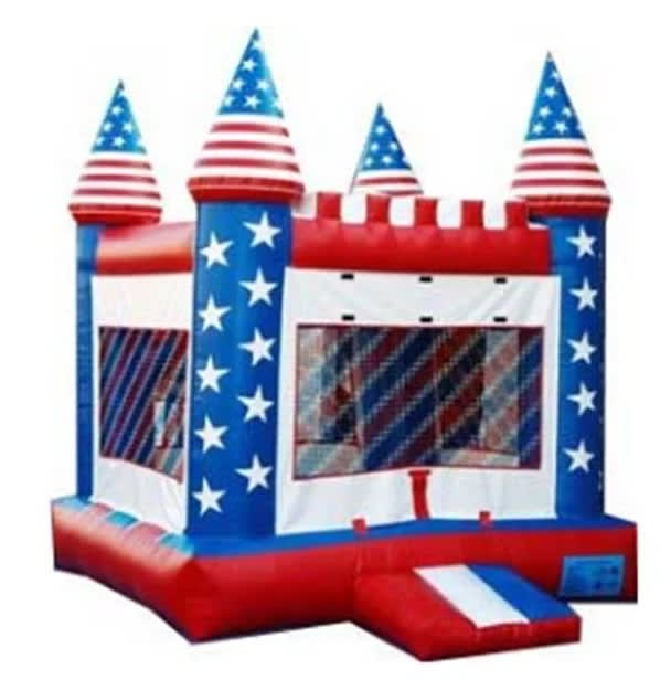 This patriotic bounce house will be a popular choice for the 4th of July, Memorial day or any occasion! This bounce house also has basketball hoop on the inside! Our moonwalks have a safety step built in for ease of entering and exiting the bounce house. Our inflatables are cleaned between each use. Allow 30 minutes for set up. You can check availability and book this bounce house by clicking below, call us at 6302055867 or Contact Us