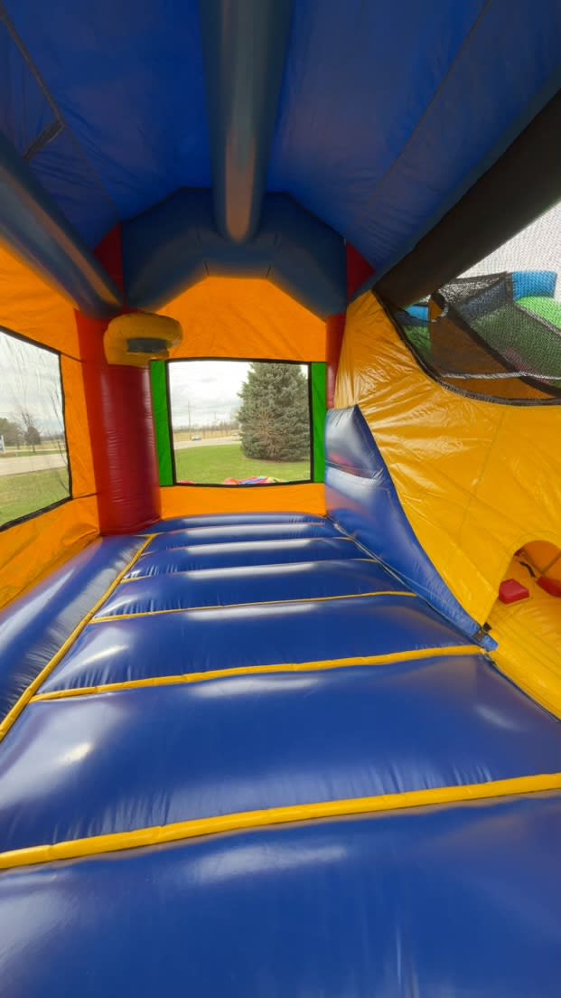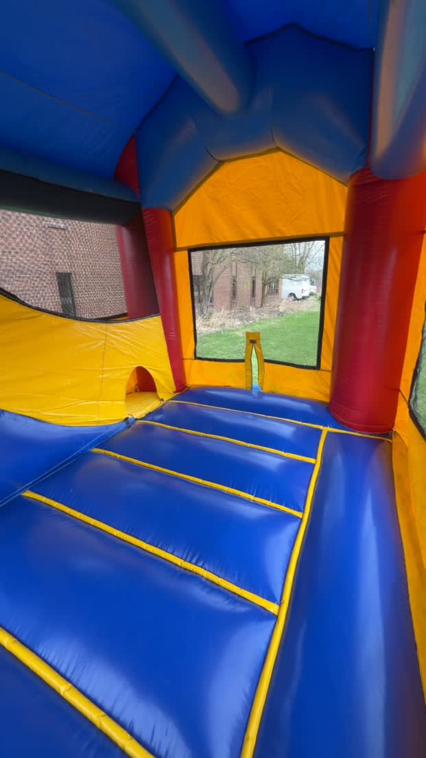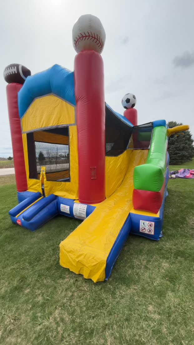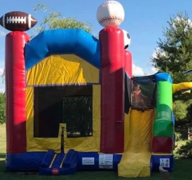 This combo comes with a basketball hoop on on the outside! This is perfect for that sports themed party end of the year graduation party for your football, baseball or basketball player. Our inflatables are cleaned between each use. Allow 30-45 minutes for set up. You can check availability and book this by clicking below, call us at 6302055867 or Contact Us